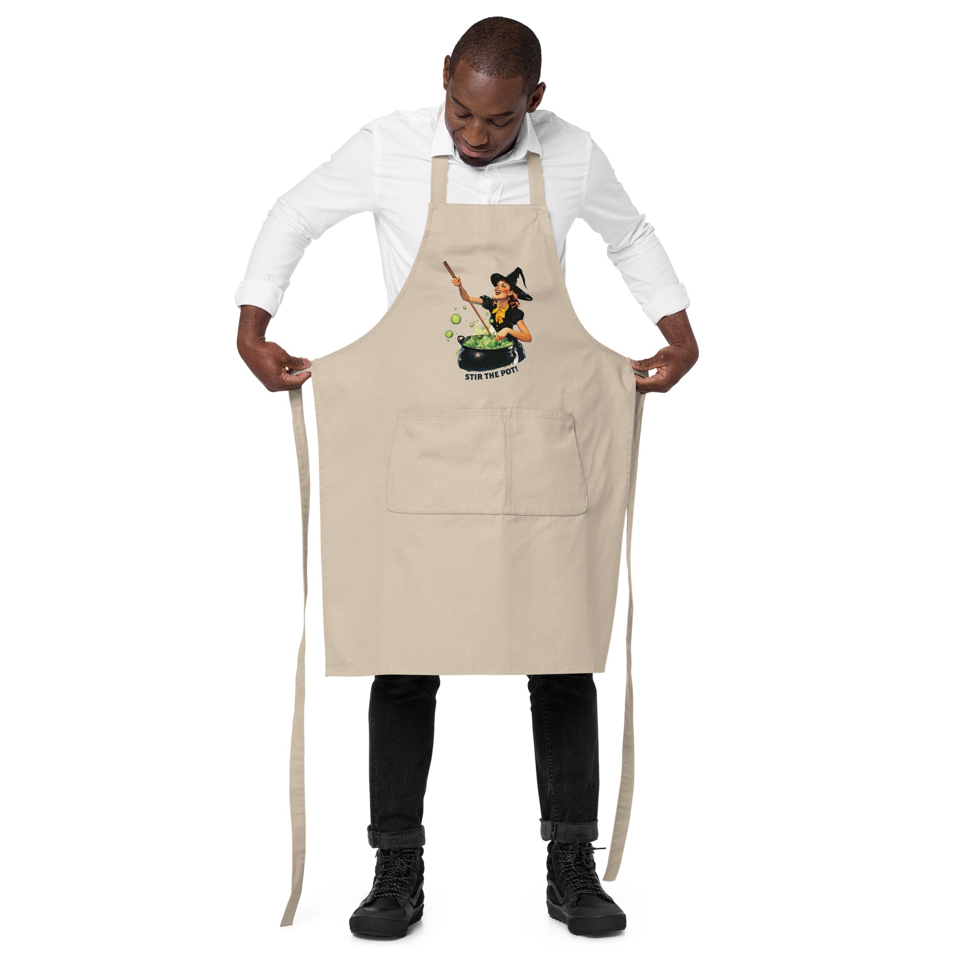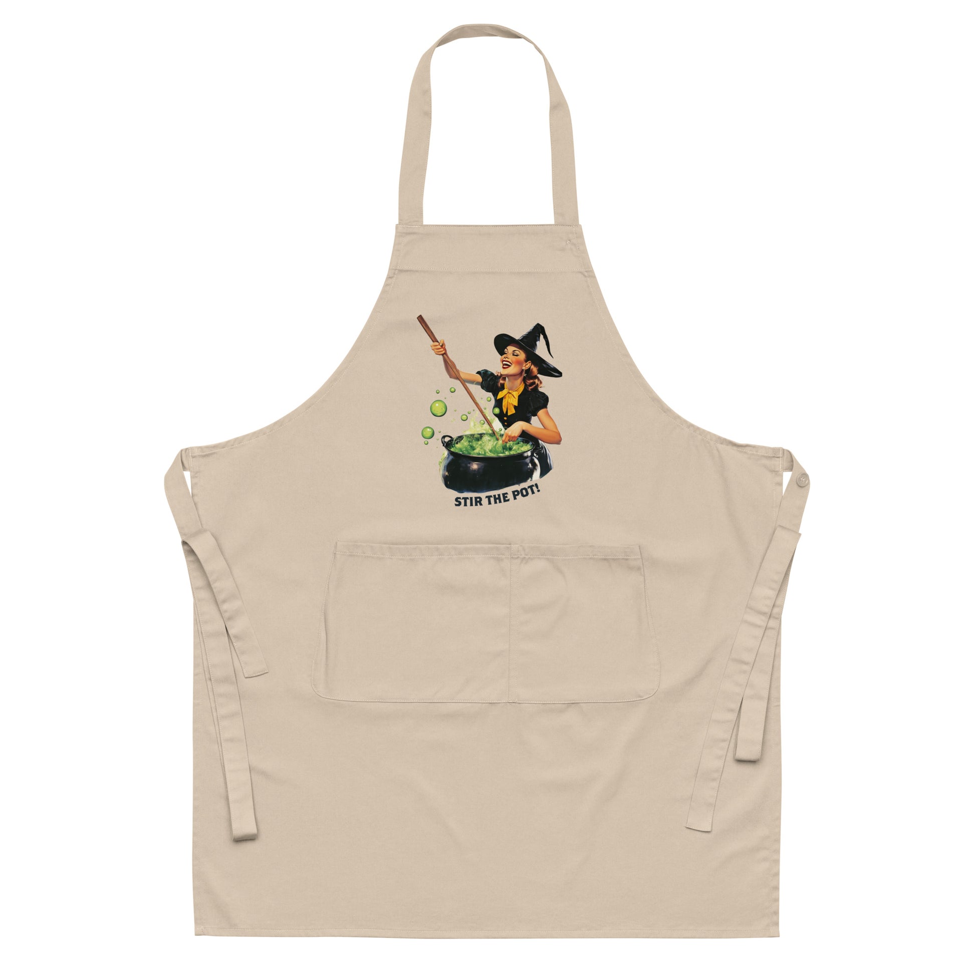 Stir The Pot Witchy Apron - Organic Cotton Funny Halloween Cooking Apron - Spooky Witch Design - Witch Gift for Housewarming Kitchen
