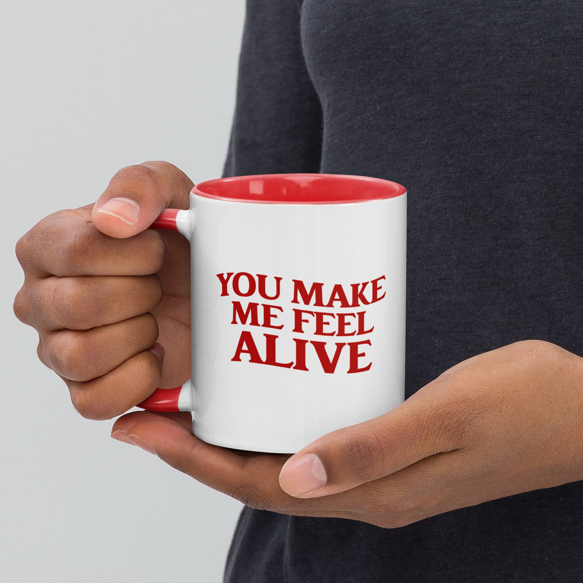 A little bit spooky, a little bit flirty—this “You Make Me Feel Alive” mug features a bold skeleton cowboy illustration with a cheeky vintage twist. Styled in classic red ink, it’s the perfect gift for your partner in crime, your rodeo Romeo, or yourself if you like your coffee hot and your humor bone-dry.